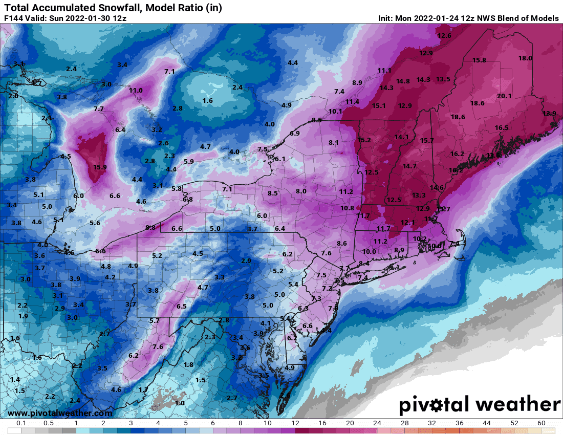 So as of breakfast, the outlier low end model was the GFS with 13-15 inches for Newtown.